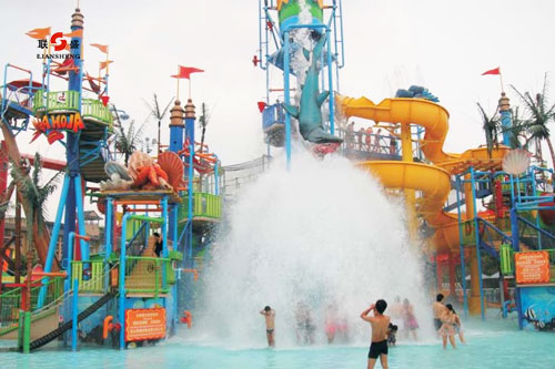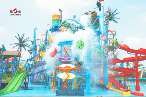 多年來,鄭州聯盛桑拿泳池設備工程有限公司在充分了解水的特性,水上游樂項目特點的基礎上,承建了多處水上樂園項目,能夠科學策劃項目的主題和風格,合理設計各功能區域的分布及亮點,真正實現刺激好玩、吸引客戶。水上樂園設備種類繁多、各種各樣,有人工造浪、大喇叭、反斗水屋、漂流河、魔力碗、各種水滑梯、水寨水屋、充氣游樂設備、各種戲水小品等等。